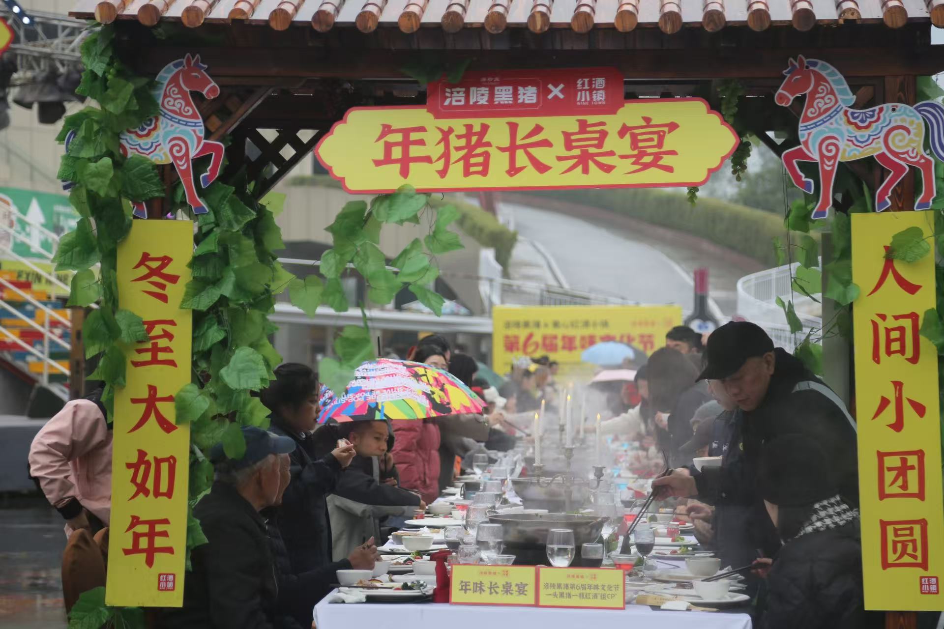 涪陵好意思心红酒小镇景区于12月20日认真拉开了第六届年味文化节的帷幕。本届年味文化节围绕“赶年集、看年戏、吃年宴、品年味、年猪巡游”等主题张开,经心打造了一场千里浸式传统年俗文化体验。