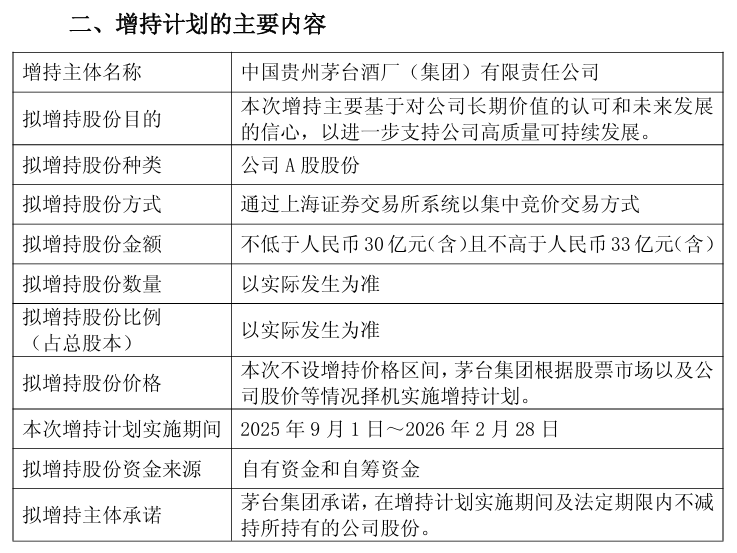 关于本次增握,贵州茅台示意,主要基于对公司恒久价值的招供和改日发展的信心,以进一步相沿公司高质料可握续发展。本次不设增握价钱区间,茅台集团将凭据股票市集以及公司股价等情况择机推论增握狡计,且同意在增握狡计推论时候及法依期限内不减握所握有的公司股份。