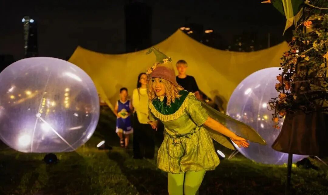 当夜幕驾临,红树林畔化身为露天戏院,在亲子泡泡秀的虚幻泡泡雨中,孩子笑声热潮;古典四重奏带来的弦乐流淌,与潮汐共识;Live Band现场献艺还有开放麦互动,邀全民共唱;户外魔术秀与气球艺术更是带来玄幻与童趣交汇的乐趣。