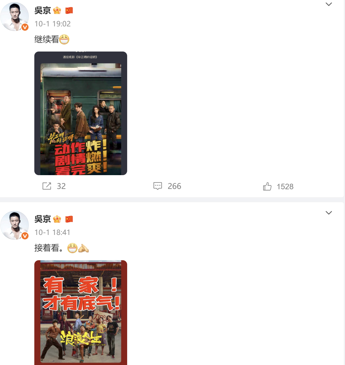 吴京也豪掷万金,同期包场了《志愿军3》《刺杀演义家2》《浪浪东说念主生》《毕正明的解说》十部电影,不难梳理背后东说念主际相关。《志愿军3》吴京的公司是纠合出品方,《刺杀演义家2》的导演路阳和他以及郭帆相关走得很近。