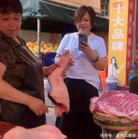 昨天她发了一个在我方大姐摊位买猪肉的视频,而就在今天早上她又就着昨天买猪肉的视频。