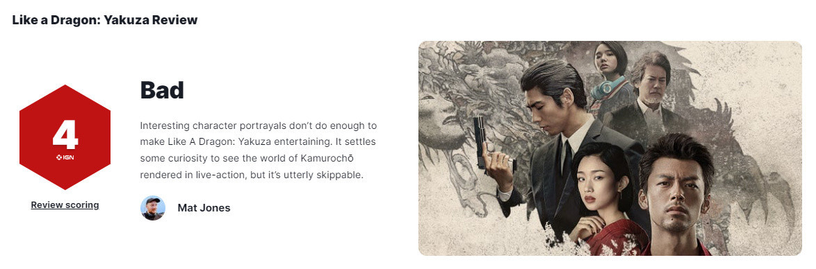 经典游戏系列《如龙》改编的真东说念主剧集《如龙 ~Beyond the Game~》一经至本日(10月25日)起在 Prime Video 各人独播,不外真东说念主剧上线后口碑似乎并不如东说念观念赌钱赚钱app,IGN近给出了4分,称剧情冗长、复杂且乏味。