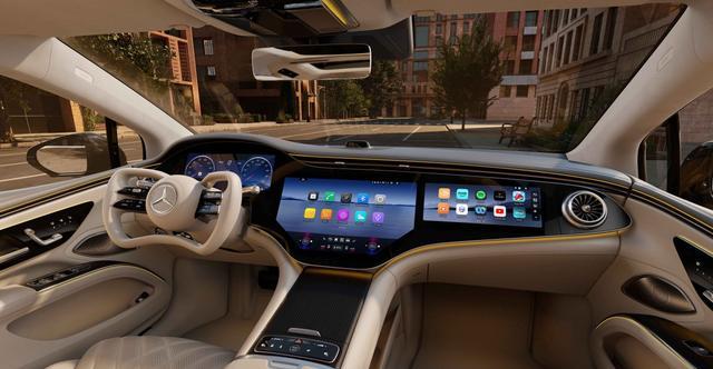 线控转向时间的应用也促成了车辆内饰研究的变革。EQS的地方盘接受了非传统的近似矩形的研究,近似航天器掌握安装。这种更紧凑的研究为驾驶员腿部腾出了更多空间,并提供了更佳的数字神态盘视线,与驰骋所主张的“转移起居室”座舱理念相契合。